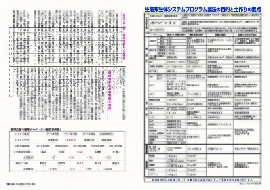 【実践事例集34】 真和:2022年7月号より 「原点に立ち返る」「ほうれん草で若返りと延命」「生態系生体システムプログラム農法の全体像」より