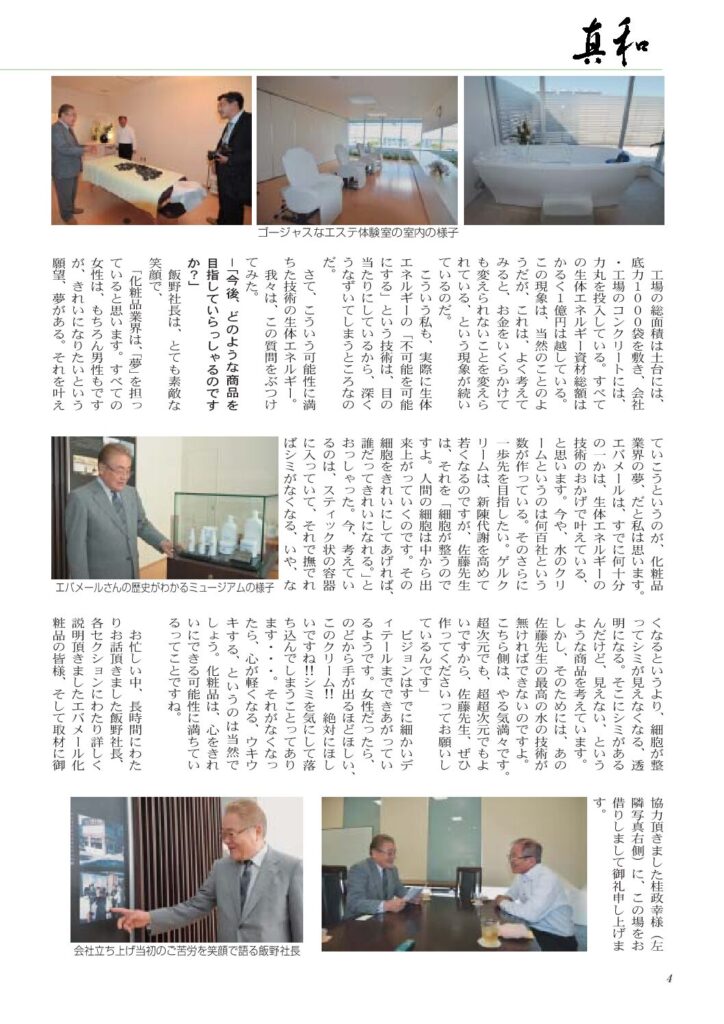 【実践事例集43】 真和:2012年8月号より 生体エネルギー準拠位置産業〜唯一無二の技術〜化粧品「エバメール」より