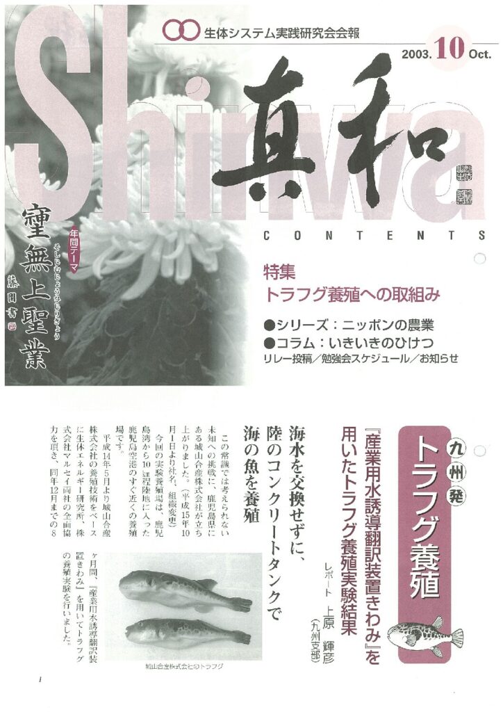 【実践事例集46】 真和:2003年10月号より 特集『「トラフグ養殖への取り組み」海水を交換せずに陸のコンクリートタンクで海の魚を養殖』より