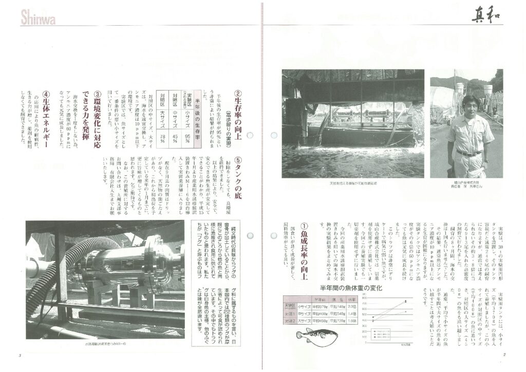 【実践事例集46】 真和:2003年10月号より 特集『「トラフグ養殖への取り組み」海水を交換せずに陸のコンクリートタンクで海の魚を養殖』より