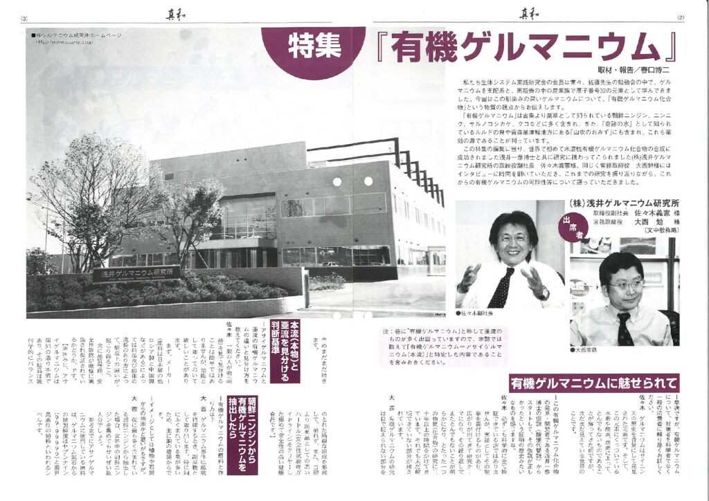 【実践事例集55】 真和:2000年12月号 特集「有機ゲルマニウム」」より